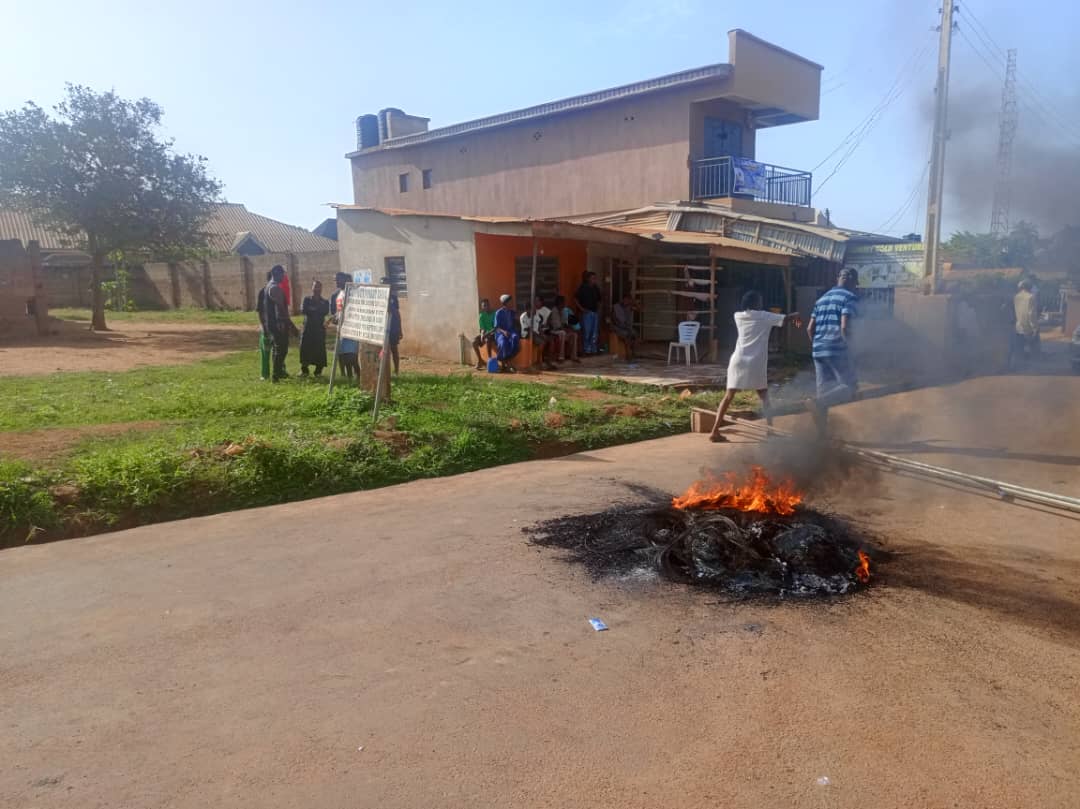 “We’re tired of this crisis. Today alone, armed robbers stole a car, over 30 phones, laptops and other items. They were knocking on doors and since there is not light, it was difficult to trace them,” one of the protesters identified as Kola said.